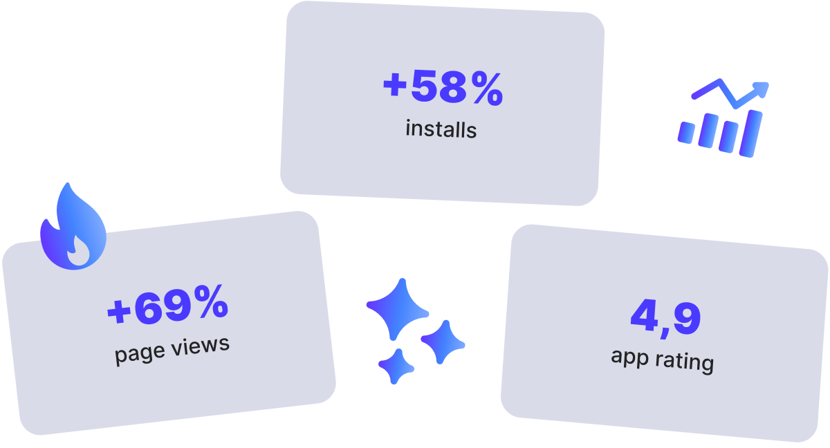 In this case study, we share how we helped a multi-brand clothing and footwear retailer enhance its app visibility, nearly double organic installs, and raise its rating from 3.6 to 4.9 through optimization, seasonal campaigns, and targeted user communication.
